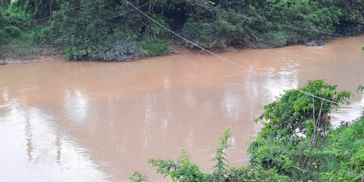Kabarminang — Air sungai Batang Siek di Jorong Seberang Tapian Napal, Nagari Koto Baru, Kecamatan Koto Baru, Dharmasraya,...