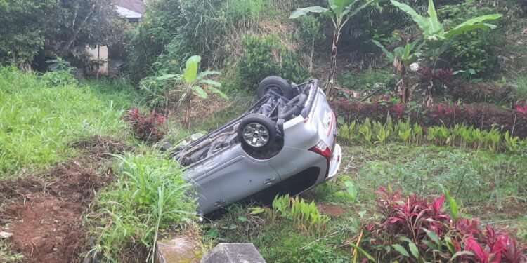 Kabarminang — Sebuah minibus berwarna silver (merek tidak teridentifikasi) terguling dan masuk parit di Jalan Lintas Batusangkar–Padang Panjang,...