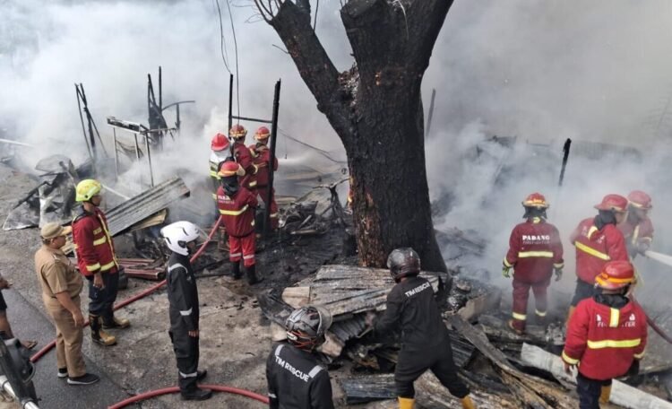 Kabarminang — Tiga bangunan terbakar di tepi banda bakali di Kelurahan Alai Parak Kopi, Kecamatan Padang Utara, Kota Padang, terbakar pada Selasa (4/11) sore.