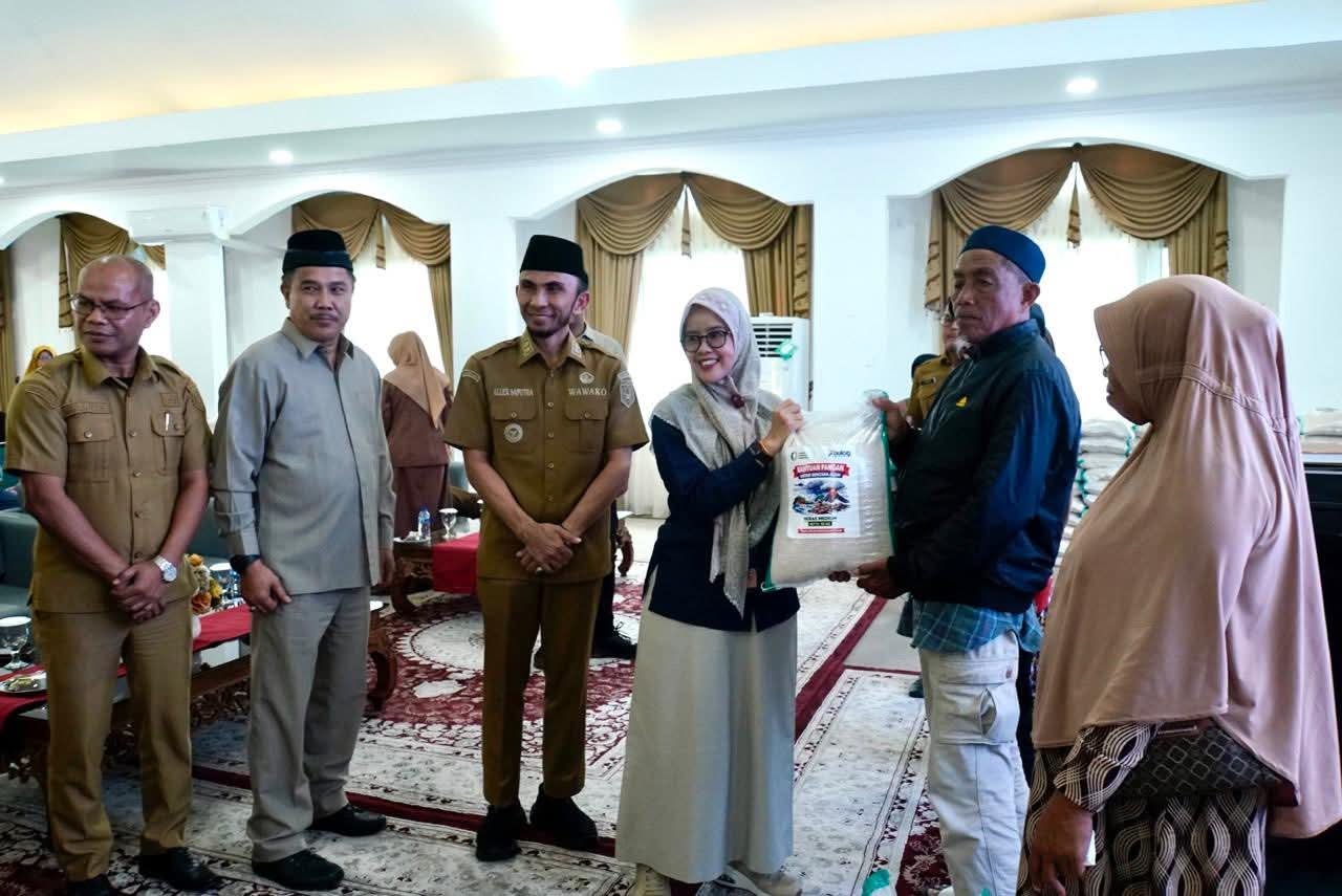 Kabarminang — Sebanyak 34 kepala keluarga (KK) terdampak bencana di Kota Padang Panjang menerima bantuan Cadangan Beras Pemerintah (CBP) dari Perum Bulog. Penyerahan dilakukan secara simbolis oleh Wakil Wali Kota Padang Panjang, Allex Saputra, di Pendopo Rumah Dinas Wali Kota, Selasa (31/3/2025).