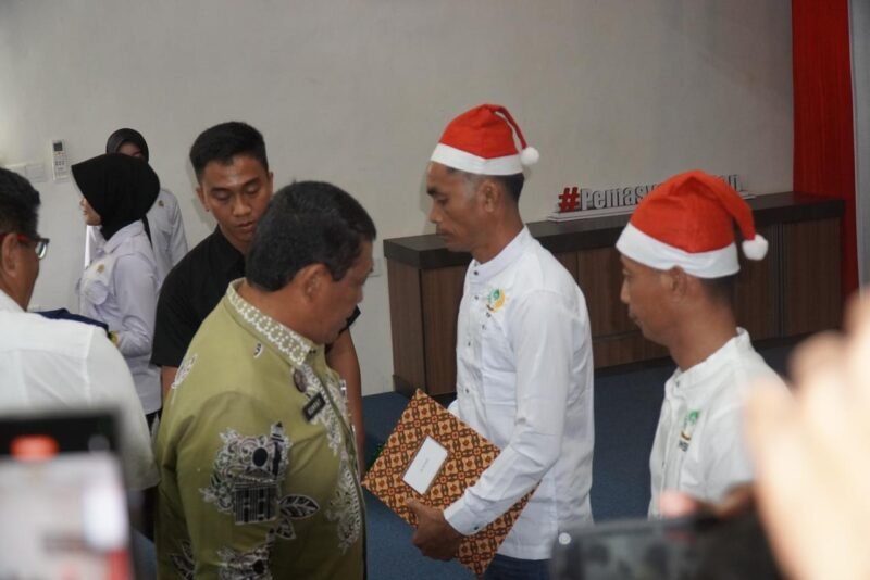 Kepala Kantor Wilayah Ditjen Pemasyarakatan Sumbar, Kunrat Kasmiri, menyerahkan dokumen remisi kepada narapidana penerima khusus Natal di Lapas Kelas IIA Padang pada Kamis (25/12). Foto: Kantor Wilayah Ditjen Pemasyarakatan Sumbar