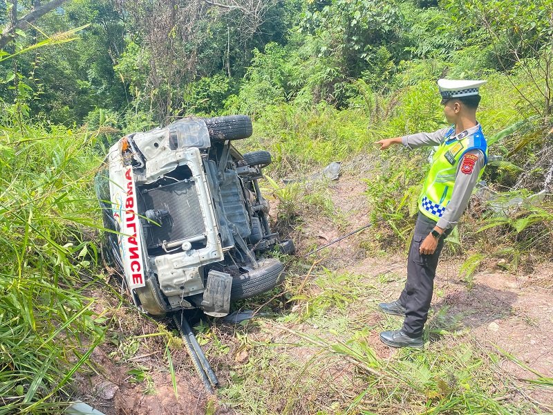 “Akibatnya, pengemudi hilang kendali dan masuk jurang sedalam sekitar 30 meter. Pengemudi dan dua penumpang ambulans tersebut mengalami luka ringan. Ketiganya dilarikan ke puskesmas terdekat,” tutur Zarwiko.