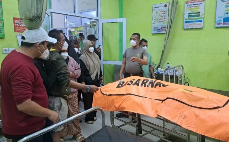 Jenazah anak laki-laki yang ditemukan pada Minggu (14/12/2025) sore di Korong Talao Mundam, Nagari Katapiang, Kecamatan Batang Anai, Padang Pariaman, dibawa ke Puskesmas Pasar Usang. Foto: Polsek Batang Anai