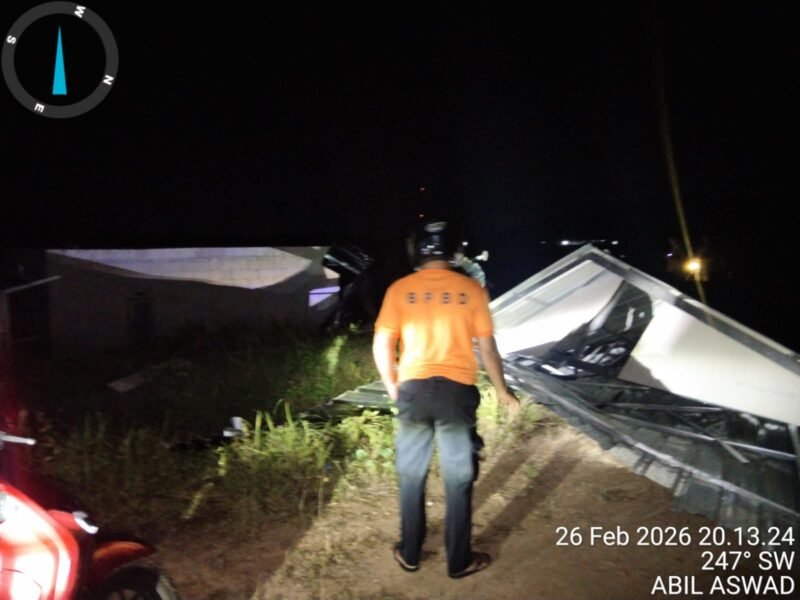 Kabarminang — Angin puting beliung melanda beberapa tempat di Pesisir Selatan pada Kamis (27/2/2026) malam. Akibatnya, sejumlah rumah rusak, baik diterjang langsung oleh angin puting beliung maupun ditimpa oleh pohon.