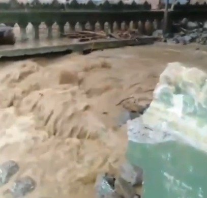 Dari beberapa video yang diunggah oleh akun Facebook Aprizal Can, terlihat air bercampur lumpur mengalir deras di badan jalan yang berada di kawasan permukiman warga.