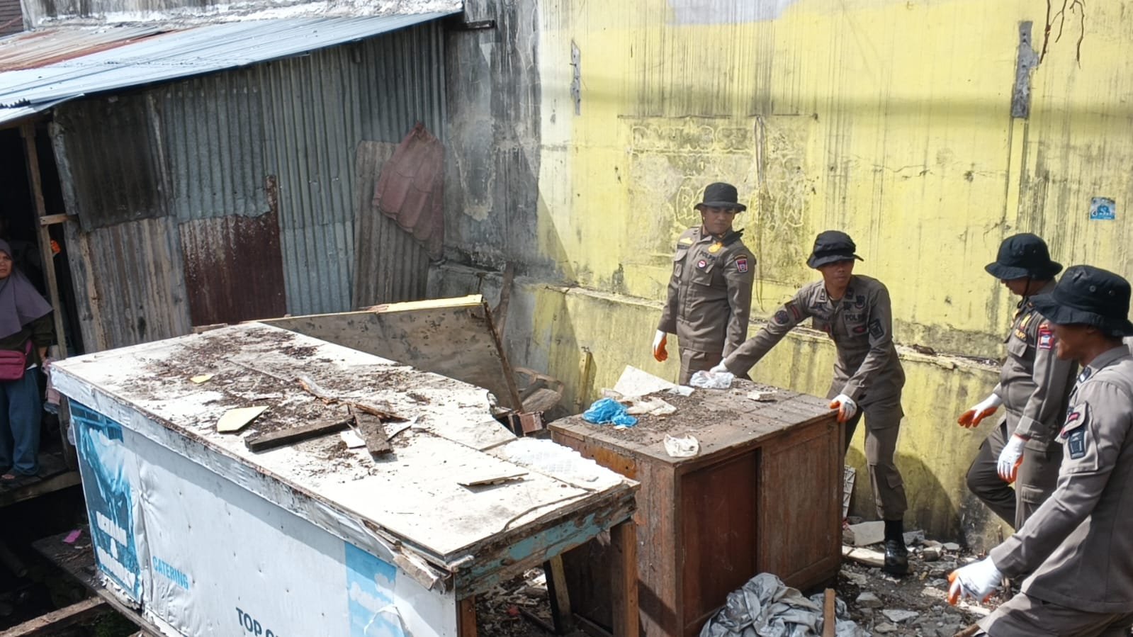 Satpol PP Padang menertibkan lima unit bangunan liar yang berdiri di badan jalan dan saluran drainase di kawasan Simpang Alai, Kelurahan Cupak Tangah, Kecamatan Pauh, Senin (12/1/2026). Foto: Satpol PP Padang