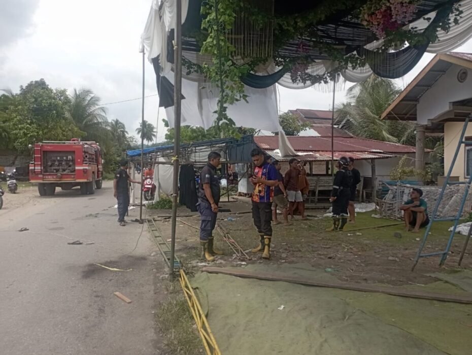 “Kejadian berawal dari percikan api dari kabel listrik, pada saat itu ada dua orang yang sedang membongkar tenda pelaminan terkena sengatan arus listrik,” katanya.