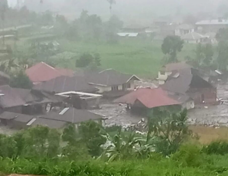 Sementara itu, video yang dibagikan warga menunjukkan aliran air bah membawa material batu dan kayu menerjang permukiman. Arus yang deras tampak memasuki area rumah warga dan menimbulkan kepanikan di lokasi.