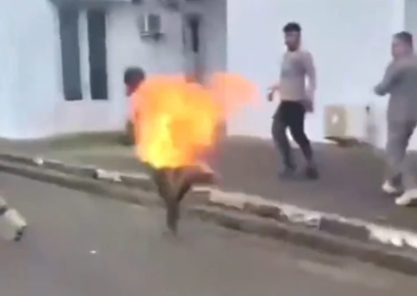 Saat api menyambar, seseorang dalam video tersebut tampak panik dan berlari dengan api yang masih menyala di tubuhnya. Suasana langsung kacau. Beberapa orang yang berada di lokasi berusaha membantu memadamkan api.