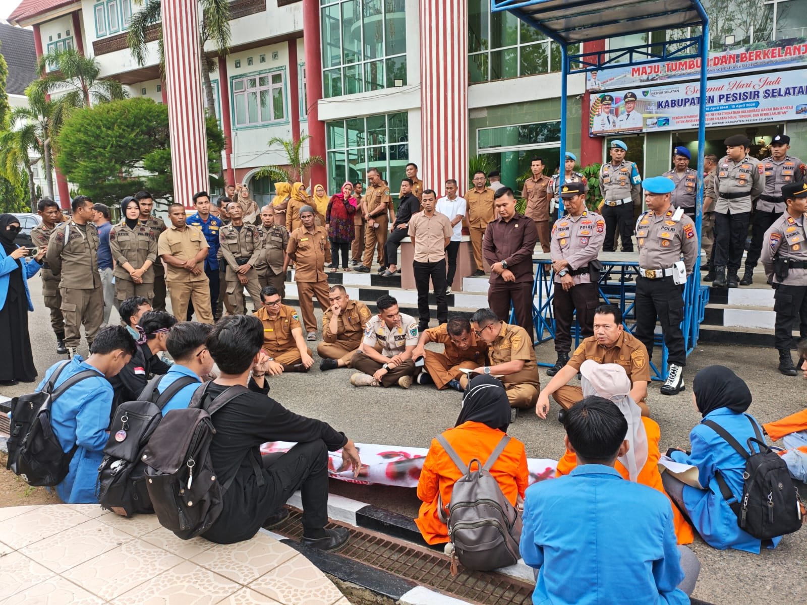 Kabarminang — Bertepatan dengan Hari Jadi Kabupaten Pesisir Selatan ke-78, puluhan mahasiswa yang tergabung dalam Aliansi Mahasiswa Pesisir Selatan menggelar aksi unjuk rasa di depan kantor bupati, Senin (20/4/2026) sore.