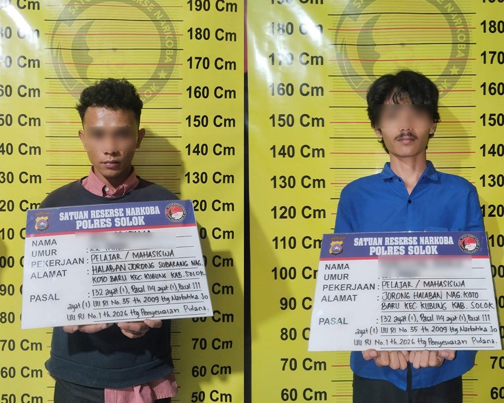 Tim Satuan Reserse Narkoba (Satresnarkoba) Polres Solok menangkap dua pemuda yang diduga terlibat dalam tindak pidana penyalahgunaan ganja, Senin (20/4/2026) sore.