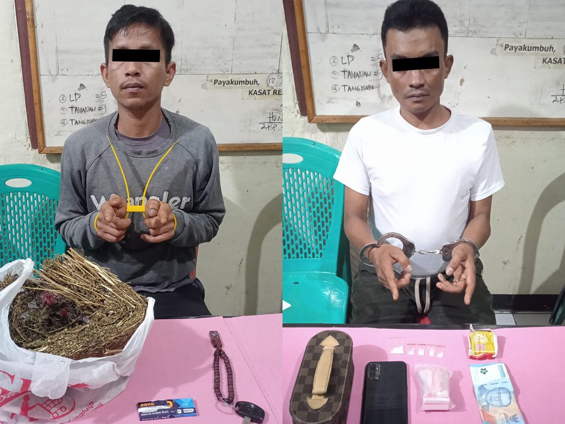 Kabarminang – Dua pria ditangkap Satuan Reserse Narkoba Polres Payakumbuh saat penggerebekan di sebuah rumah di Kelurahan Napar, Kecamatan Payakumbuh Utara, Kota Payakumbuh pada Rabu (14/1). Dalam operasi tersebut, polisi mengamankan sabu-sabu seberat 1,55 gram dan ganja kering seberat 350 gram.