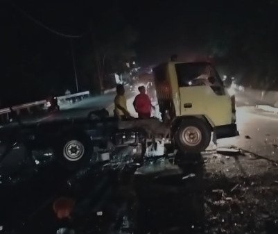 Dua truk bertabrakan di bawah Panorama 1 Sitinjau Lauik, Kelurahan Indarung, Kecamatan Lubuk Kilangan, Kota Padang, pada Sabtu (24/1/2026) malam.