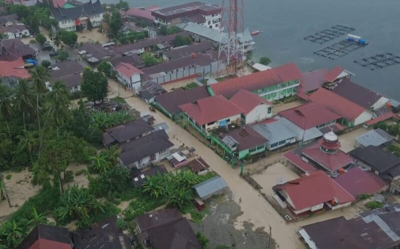 “Badan jalan dipenuhi dengan aliran air deras yang bercampur lumpur, kayu, dan bebatuan,” tutur Abdul.