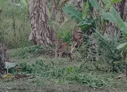 Sementara itu, kemunculan harimau tersebut sempat terekam kamera ponsel warga. Harimau tersebut muncul di sela-sela pohon pisang. Dalam video itu terdengar seseorang sempat berbicara dengan lisan dan menanyakan kabar harimau itu.