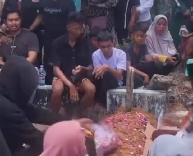 Video prosesi pemakaman almarhumah Cindy yang diterima Sumbarkita memperlihatkan suasana penuh haru di pemakaman kawasan Gadut, Kota Padang, pada Jumat (10/10/2025).