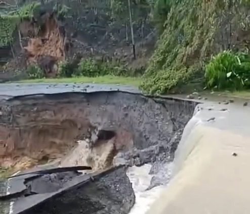 Jalan alternatif Padang–Bukittinggi via Malalak–Sicincin terban pada Senin (24/11/2025). Foto: Ist