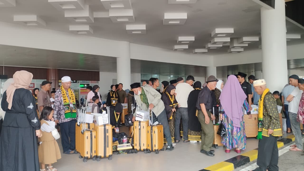Suasana kepulangan jemaah umrah asal Sumatera Barat di Bandara Internasional Minangkabau (BIM), Padang Pariaman, Senin (9/3/2026). Foto: Qadri/Sumbarkita