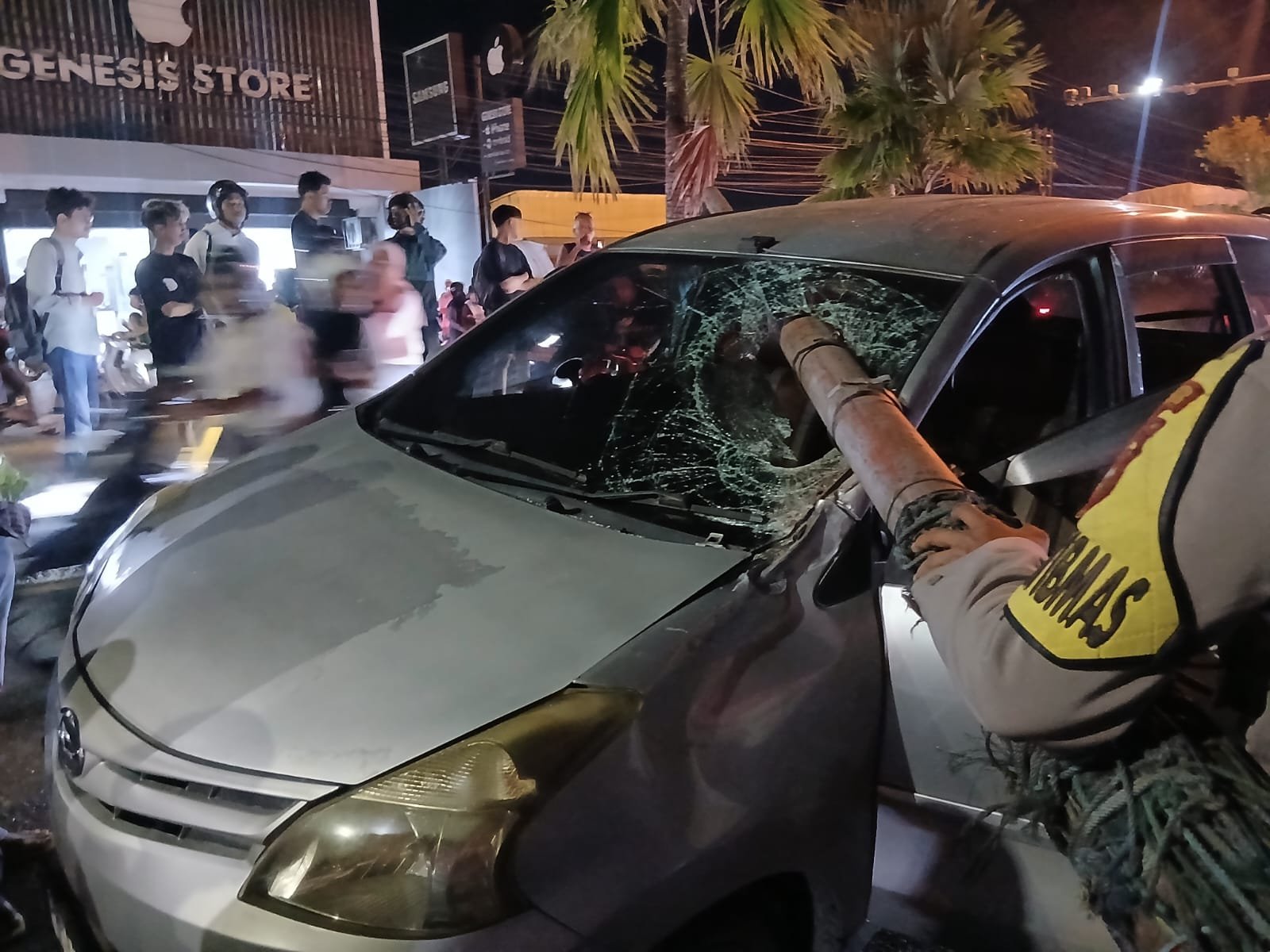 “Tiang listrik tersebut roboh dan menimpa mobil korban. Tiang listrik sampai menembus ke dalam mobil melalui kaca depan,” ujarnya.