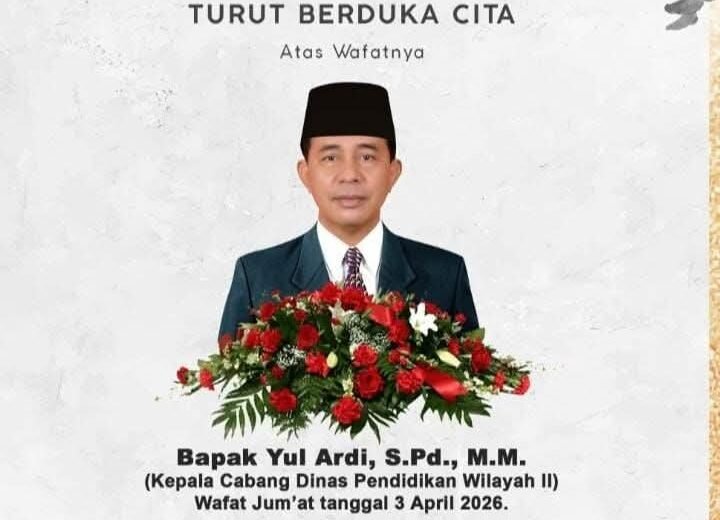 Kabarminang — Kabar duka datang dari Dinas Pendidikan Sumatera Barat (Sumbar). Kepala Cabang (Kacab) Dinas Pendidikan Sumbar Wilayah II, Yul Ardi (56 tahun), meninggal dunia akibat kecelakaan.