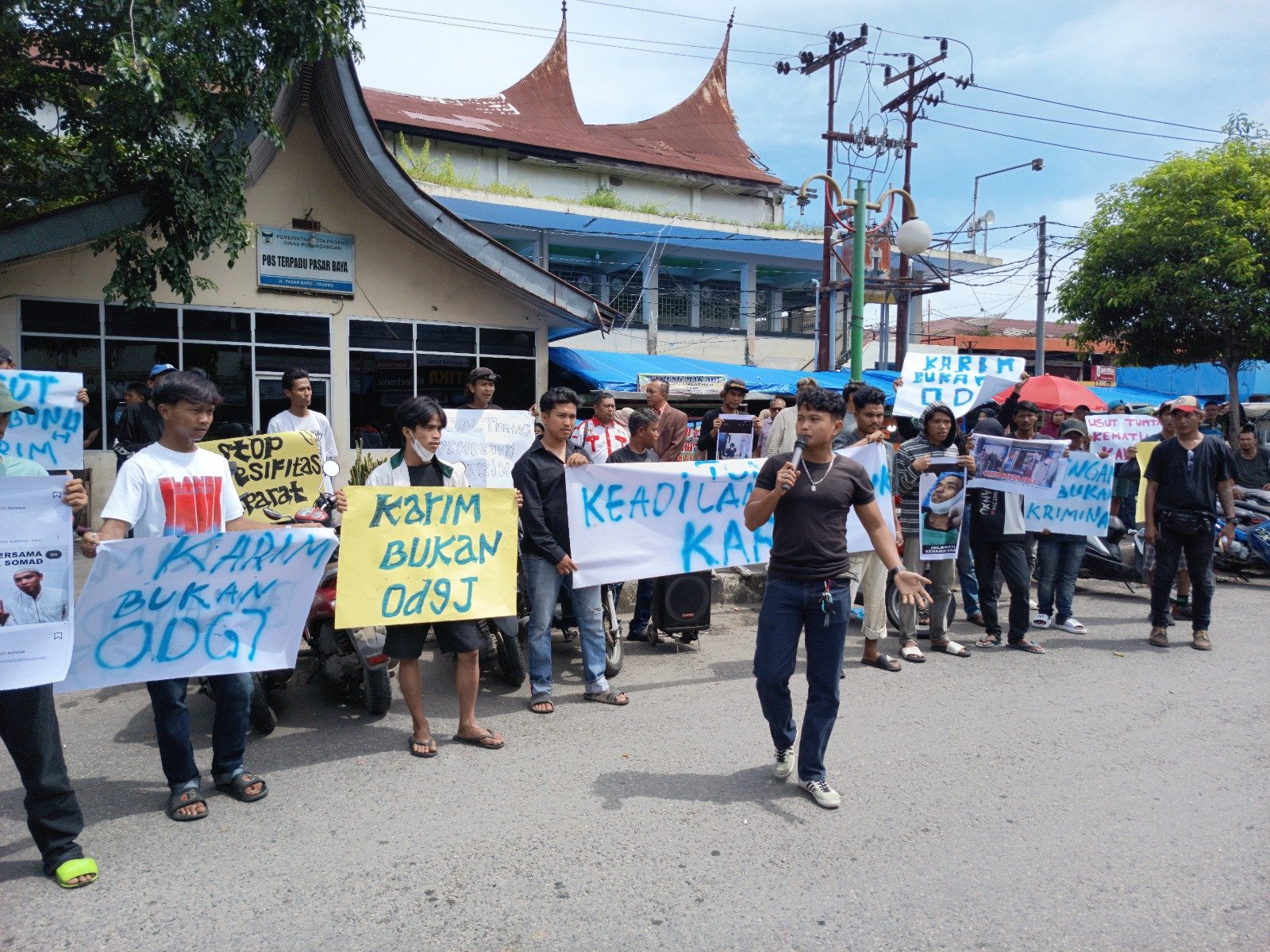 Hal itu disampaikan dalam orasi di kawasan Permindo, Pasar Raya Padang, Kamis (2/4/2026) siang. Pantauan Sumbarkita, massa membawa sejumlah poster bertuliskan “Karim Bukan ODGJ” hingga “Keadilan untuk Karim”.