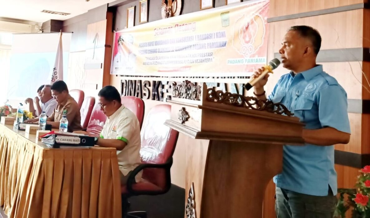 Kabarminang – Komite Olahraga Nasional Indonesia (KONI) Kabupaten Padang Pariaman menggelar Rapat Koordinasi dan Konsultasi (Rakorsi) di Aula Dinas Kesehatan Padang Pariaman, Senin (3/11). Kegiatan ini menjadi bagian dari upaya memperkuat sinergi dan arah pembangunan olahraga di daerah.
