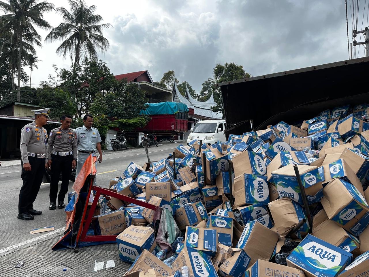 Kasat Lantas Polres Solok, Iptu Rido, mengatakan kecelakaan itu berawal dari truk BA 8459 MQ muatan aqua yang dikemudikan Ferdy Ardiansyah Harahap (28) dan membawa seorang kernet Ray Odiesheo Cristopel (24) hilang kendali saat melintasi tanjakan.