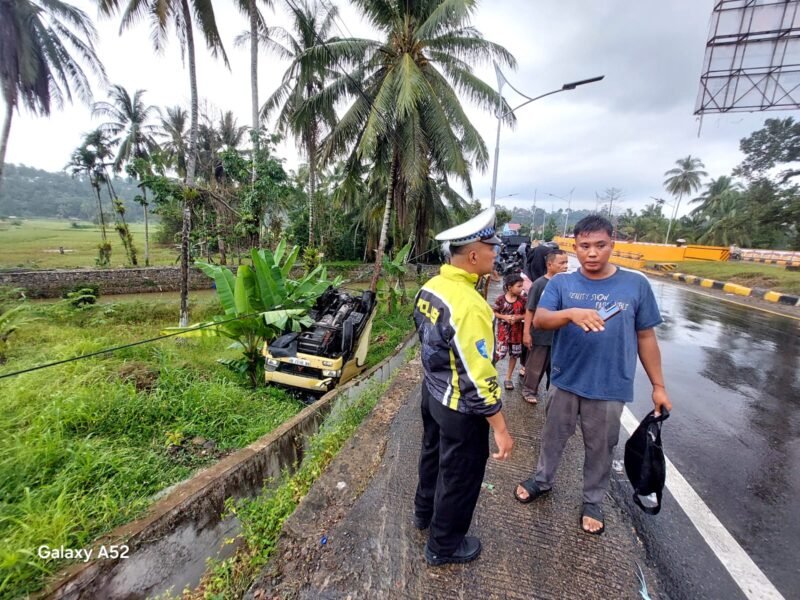 Kecelakaan tunggal itu menjadi perhatian pengendara yang melintas di lokasi dan warga setempat. Pengendara dan warga melihat mobil yang masuk lahan warga dalam kondisi terbalik.