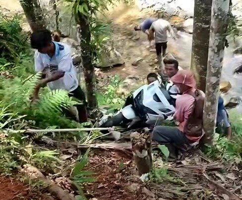 Kabarminang — Sebuah sepeda motor masuk ke jurang di bawah Jembatan Kayu Ngalau Ameh, Kampung Puluik-Puluik, Nagari Puluik-Puluik, Kecamatan IV Nagari Bayang Utara, Pesisir Selatan, pada Senin (22/12/2025) siang.