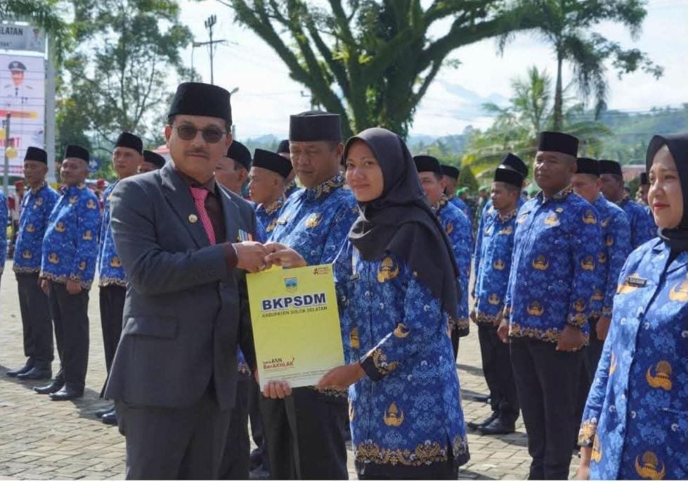 Penyerahan SK dilakukan Bupati Solok Selatan, Khairunas, usai pengambilan sumpah PPPK di halaman Kantor Bupati, Rabu (1/10/2025). Kegiatan ini digelar setelah upacara peringatan Hari Kesaktian Pancasila sekaligus Hari Jadi ke-80 Provinsi Sumatera Barat.