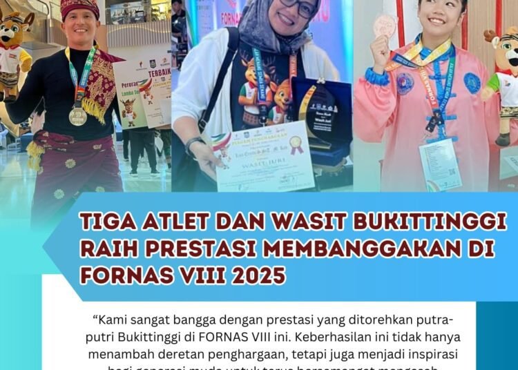 Kabarminang – Atlet dan wasit asal Kota Bukittinggi kembali mencatatkan prestasi membanggakan pada ajang Festival Olahraga Rekreasi Masyarakat Nasional (FORNAS) VIII tahun 2025 yang berlangsung di Lombok Epicentrum Mall, Nusa Tenggara Barat, pada 10–13 Juli 2025.