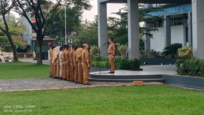 Sekretaris Daerah Payakumbuh, Rida Ananda, memimpin apel pagi ASN di halaman Balai Kota, Senin (20/4/2026).