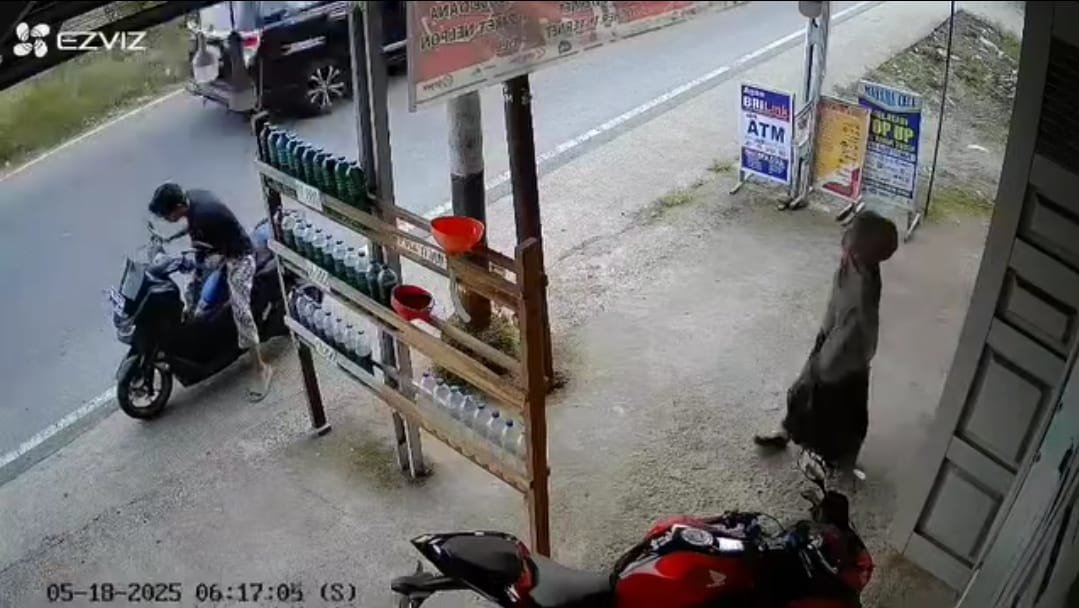 Peristiwa itu terjadi pada Minggu (18/5/2025) pagi di kawasan Lolo, Kelurahan Gunung Sarik. Dalam rekaman CCTV yang dikirimkan warga kepada Sumbarkita, terlihat seorang pria mengendarai motor Yamaha Nmax hitam, datang ke kios bensin eceran milik seorang perempuan. Ia mengenakan baju hitam dan celana bermotif batik, serta tidak memakai helm.