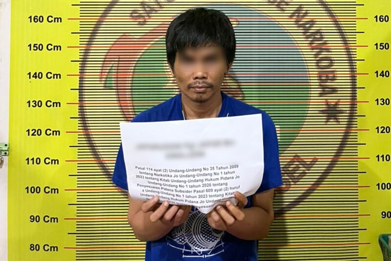 Pihaknya akan menjerat pria itu dengan Pasal 114 ayat 2 Undang-Undang Nomor 35 Tahun 209 tentang Narkotika juncto Undang-Undang Nomor 1 Tahun 2023 tentang KUHP juncto Undang-Undang Nomor 1 Tahun 2026 tentang Penyesuaian Pidana subsider Pasal 609 ayat 2 huruf a Undang-Undang Nomor 1 Tahun 2023. Berdasarkan pasal-pasal itu, katanya, JP terancam hukuman minimal 6 tahun dan maksimal 20 tahun penjara.