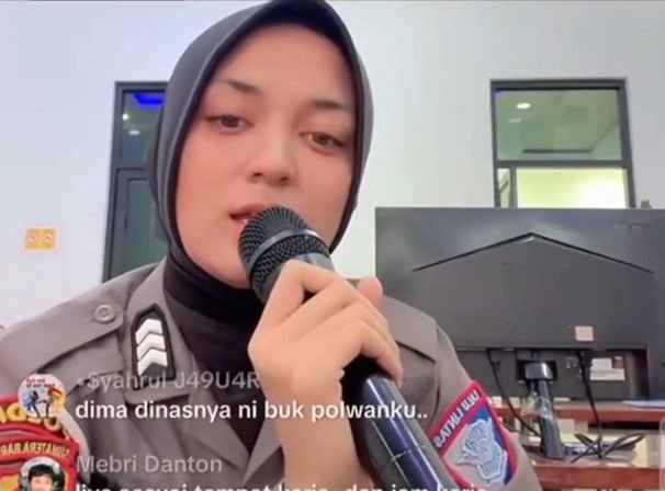 Sebelumnya viral video seorang polwan yang bernyanyi dalam siaran langsung di TikTok saat jam kerja. Dalam video itu ia terlihat kesal saat ada komentar yang menegur dirinya karena melakukan siaran langsung saat jam kerja. Untuk menanggapi komentar netizen, ia mengatakan, “Yang julid keluar aja, ya” dan “Kamu risih, ya.”
