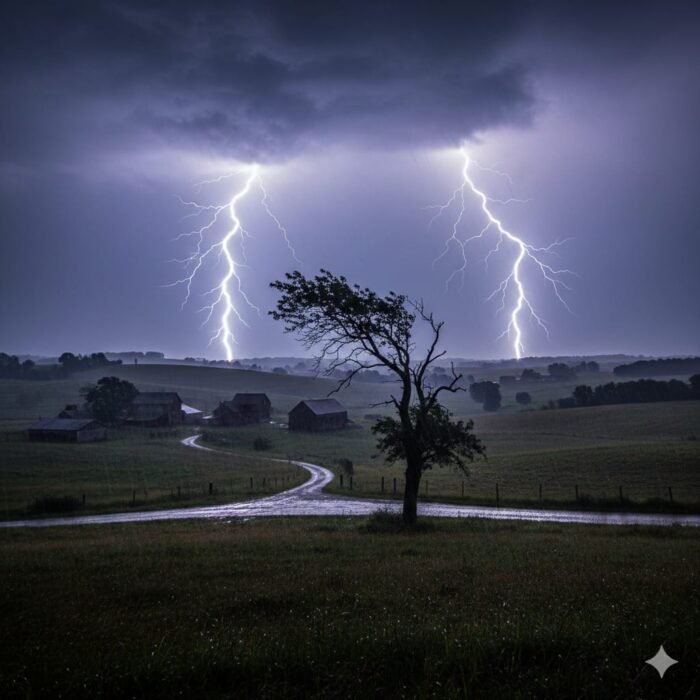 Ilustrasi hujan petir. Foto: Ilustrasi AI