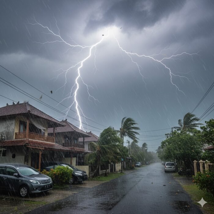 Padang Pariaman: hujan petir, suhu 23–30 °C, kelembapan 71–98%