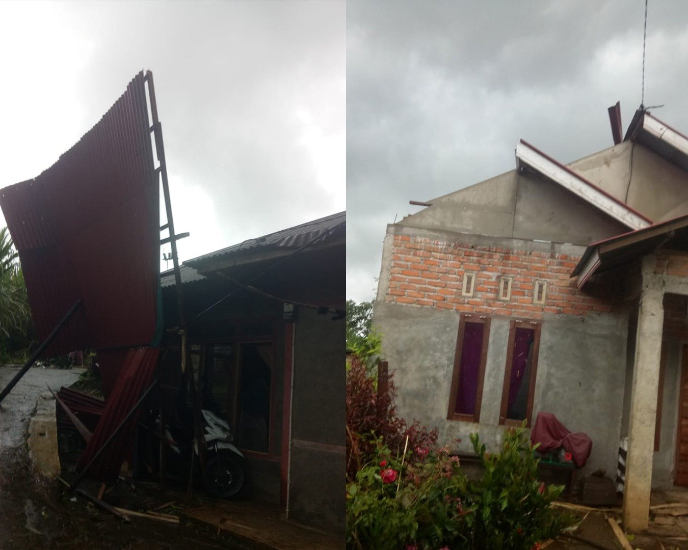 Enam rumah warga di Jorong Gobah, Nagari Bukik Batabuah, Kecamatan Banuhampu, Kabupaten Agam, rusak akibat diterjang angin puting beliung pada Minggu (11/1) sore. Foto: Ist