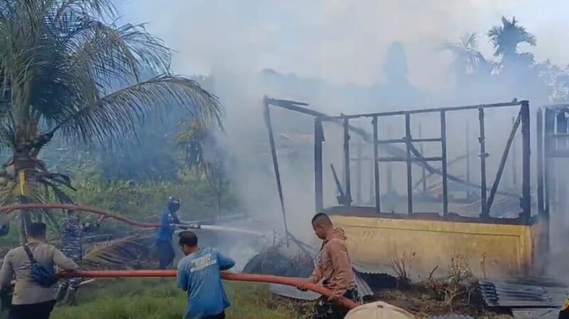 Warga sekitar bersama unsur TNI dan Polri bergerak cepat memadamkan api dan mengamankan area agar kobaran tidak menjalar ke bangunan lain di sekitarnya.