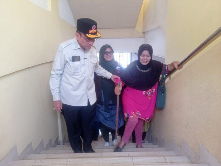 Namun, langkah sebagian warga tersendat. Seorang perempuan paruh baya tampak kesulitan menaiki anak tangga dengan tongkat di tangannya. Melihat hal itu, Maigus Nasir spontan turun tangan. Ia menuntun perempuan tersebut dengan sabar, memastikan sang warga sampai ke lantai empat dengan selamat.