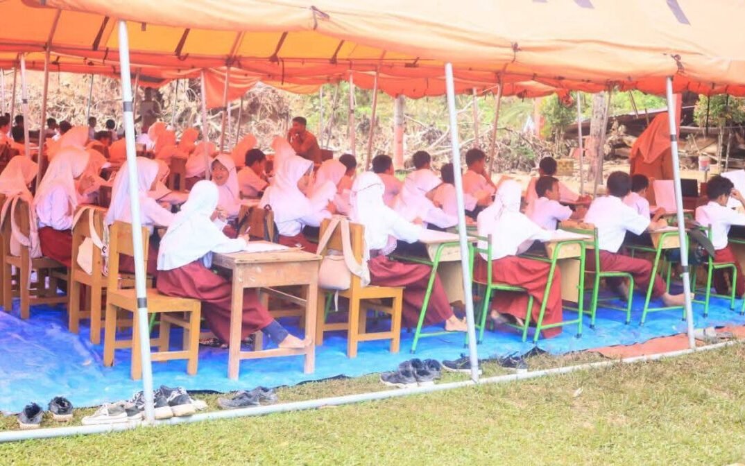 “Kami harus bergerak cepat. Hampir seluruh bangunan sekolah roboh, hanya perpustakaan yang tersisa. Tenda ini satu-satunya cara agar ujian tetap bisa dilaksanakan,” ujar Lisa.
