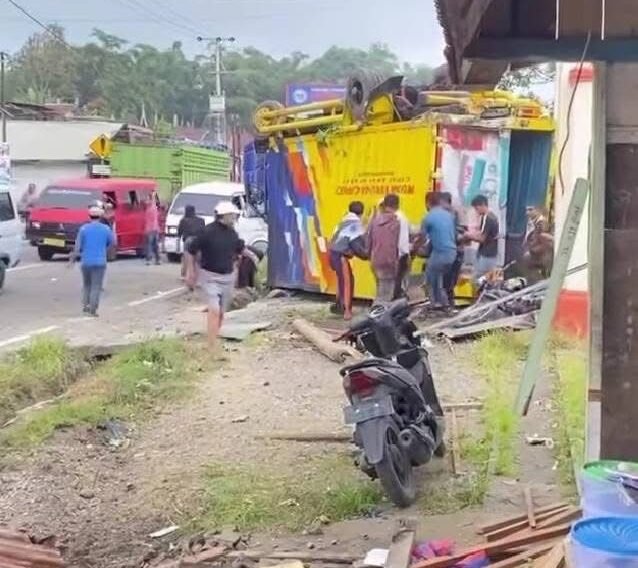 Sementara itu, truk trailer bermuatan pupuk terus melaju tanpa kendali dan kembali menabrak dua pejalan kaki, masing-masing Jefrizal (37) dan Alfizar (51), yang berada di sebuah warung di sisi kiri jalan. Truk tersebut juga menghantam warung milik warga sebelum akhirnya terbalik di pekarangan rumah warga.