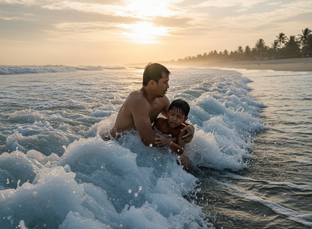 Warga yang melihat kejadian tersebut langsung bergerak cepat memberikan pertolongan. Aksi penyelamatan dramatis itu berhasil membawa korban kembali ke tepi pantai dalam keadaan selamat.