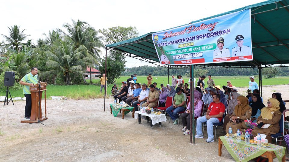 Wali Kota Pariaman, Yota Balad, mengapresiasi Gerakan Pengendalian Hama Wereng yang digagas oleh Pemerintah Desa Sungai Pasak, Kecamatan Pariaman Timur Kota Pariaman.