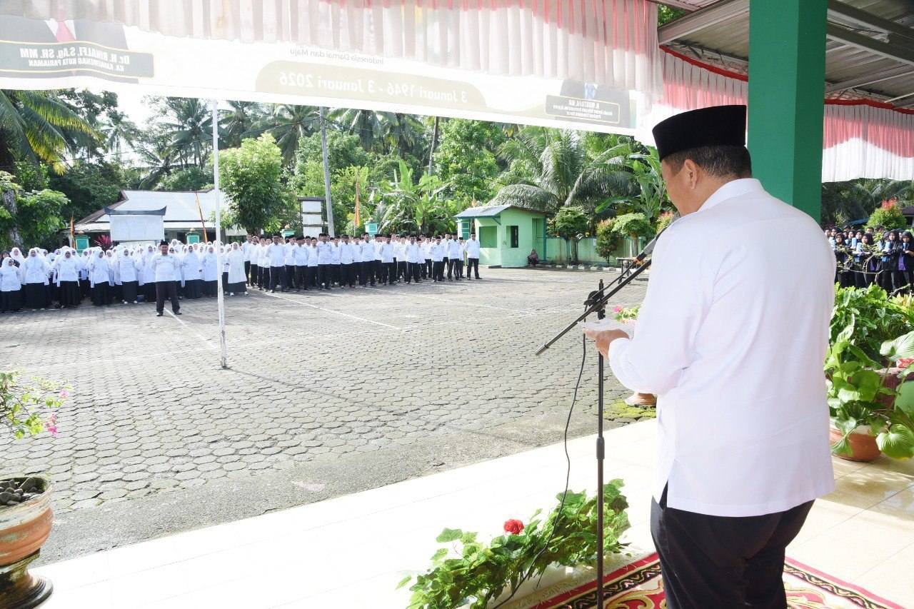 Kabarminang – Wali Kota Pariaman, Yota Balad, didapuk menjadi pembina upacara pada peringatan Hari Amal Bakti (HAB) ke-80 Kementerian Agama Republik Indonesia (RI) tingkat Kota Pariaman tahun 2026. Upacara tersebut berlangsung di Halaman Kantor Kementerian Agama RI Kota Pariaman, Desa Air Santok, Kecamatan Pariaman Timur, Sabtu (3/1/2026).