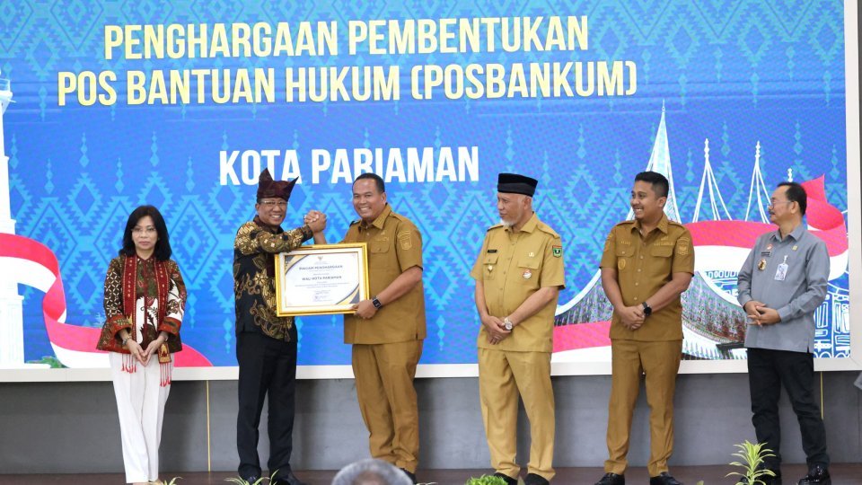 Sumbarkita — Wali Kota Pariaman, Yota Balad, menerima penghargaan dari Menteri Hukum RI, Supratman Andi Agtas, atas dukungan pemerintah kota dalam pembentukan pos bantuan hukum (Posbankum) di wilayah tersebut.