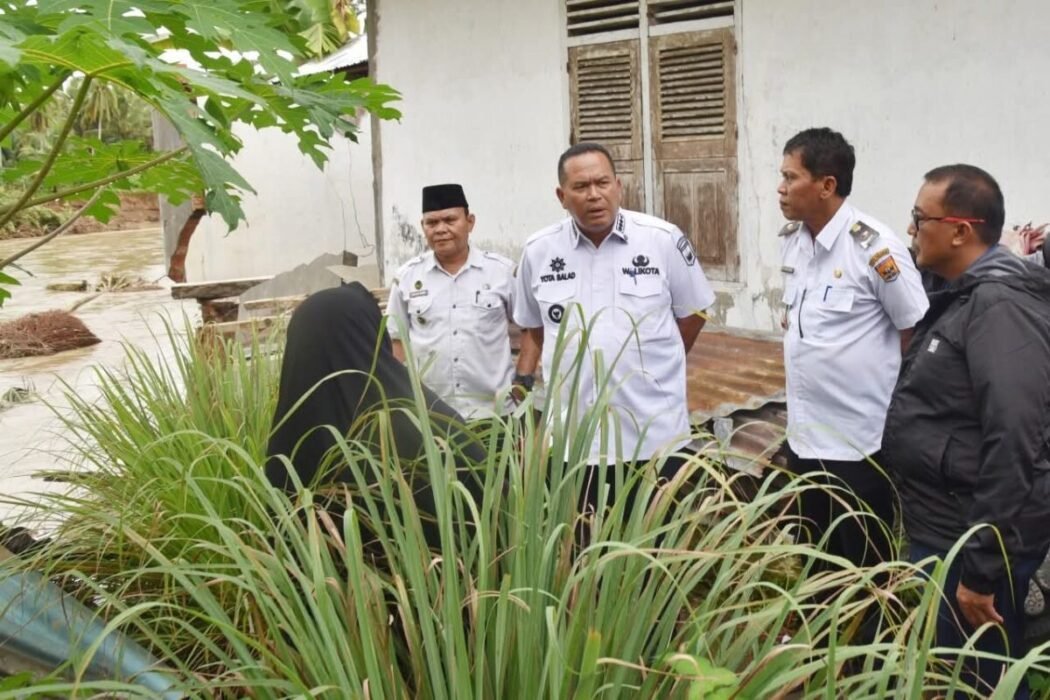 Kabarminang — Wali Kota Pariaman, Yota Balad, meninjau langsung rumah warga yang amblas akibat abrasi Sungai Batang Mangor di Desa Marunggi, Kecamatan Pariaman Selatan, sekaligus menyerahkan bantuan sembako kepada keluarga terdampak, Rabu (10/12/2025) sore.