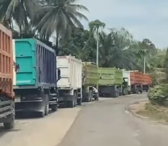 Truk-truk berukuran besar yang diduga membawa muatan melebihi kapasitas itu kerap melintas di kawasan tersebut, mengakibatkan kerusakan jalan yang semakin parah dan membahayakan pengguna jalan lainnya.